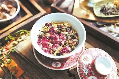生姜性味辛温,归肺脾胃经,可祛风发汗、解表散寒、温中、温肺。大枣性温味甘,归心脾胃经,可补中益气、养血安神、养心补脾、保护胃气。玫瑰花性温味微苦甘,入肝脾经,可疏肝解郁、活血化瘀、理气调经、醒脾和胃;三药合用散寒暖胃,疏肝醒脾,可作念立冬时节,防护风寒外感,寒邪内伤脾胃之用。
