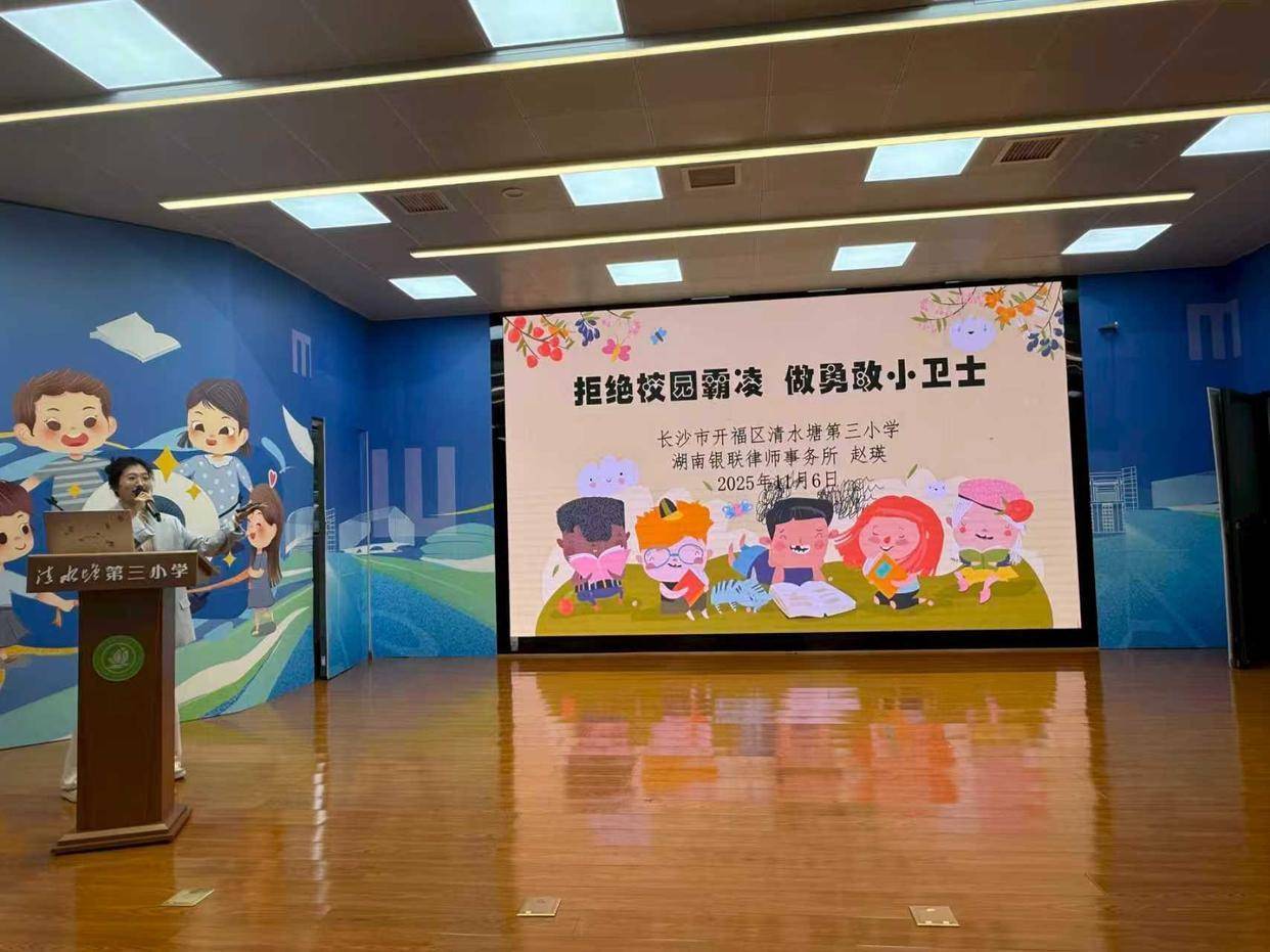 11月6日,长沙市开福区净水塘第三小学面向整体学生,举办“拆开校园霸凌开云kaiyun官方网站,作念勇敢小卫士”主题法治讲座。行径特邀湖南银联讼师事务所赵瑛讼师主讲,继承“现场参与+网罗直播”的样式同步进行,确保全校每一个班级、每又名学生齐能同步凝听、共同学习,终了法治莳植的全面笼罩。